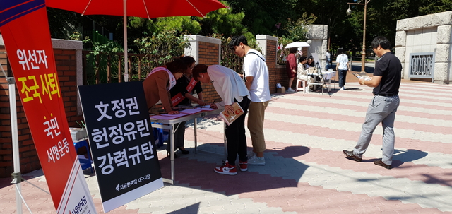 자유한국당 대구시당이 계명대 동문앞에서 서명운동을 벌이고 있다. ⓒ 자유한국당 대구시당