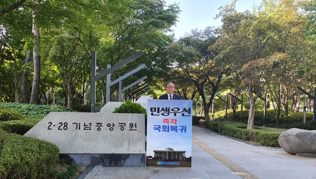 이에대해 더불어민주당 대구시당(위원장 남칠우)은 조국 법무부 장관 임명과 관련, 대구지역 자유한국당 의원들이 삭발에 참여하는 등 정쟁을 이어가고 있는 데 대해 "개탄을 금치 못하겠다"며 ‘민생우선’ ‘국회 즉각적인 복귀’를 촉구하는 1인 시위를 진행하고 있다.