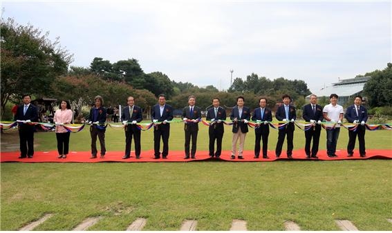 20일 전주수목원에서 이강래 한국도로공사 사장(왼쪽에서 6번째), 정동영 민주평화당 대표(왼쪽에서 7번째), 김승수 전주시장(왼쪽에서 5번째) 등 주요 내빈들이 '2019정원박람회' 기념 테이프 커팅식을 하고 있다.ⓒ한국도로공사