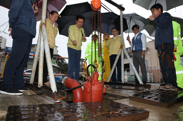▲이강덕 시장의 장성 빗물펌츠장 점검 ⓒ포항시