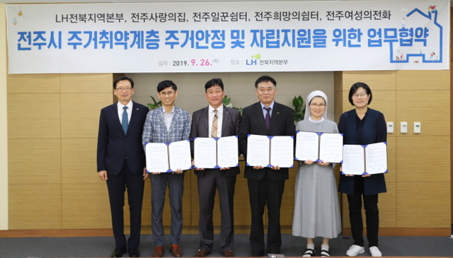 이번 협약은 전주시내 쪽방‧고시원‧여인숙‧노숙인시설 등 비주택 거주자와 가정폭력 피해자, 출산예정 미혼모 등 주거취약계층의 주거지원 활성화를 위해 유관 기관 간 협력체계를 구축코자 마련됐다.