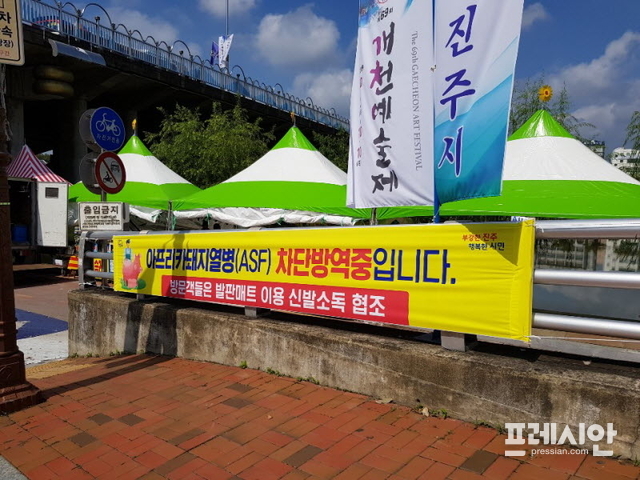 경남 진주시는 오는 10월 1일부터 13일까지 남강과 진주성 등에서 열리는 진주 10월 축제장 아프리카 돼지열병 차단방역 대책 마련에 분주히 움직이고 있다.