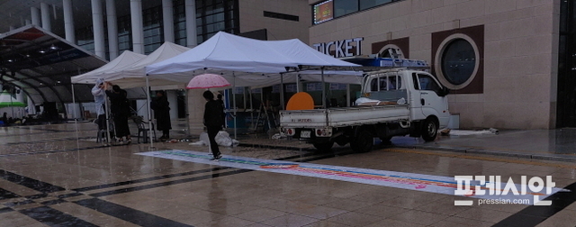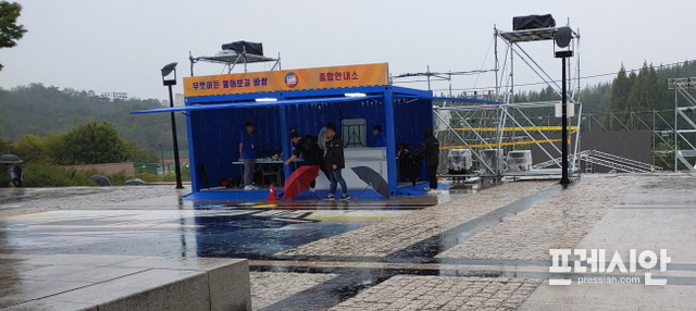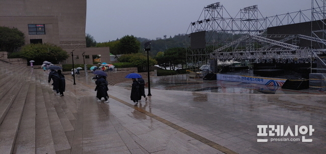 그래도 소리축제가 시작된 2일 오전 한국소리문화의전당 주변 곳곳에서는 비로 인한 관람객들의 불편을 최소화하기 위해 스테프들의 발걸음은 분주했고, 축제장을 찾은 관람객들의 안전을 위해 전북 전주 덕진 소방서 대원들은 궂은 날씨에도 자리를 지키고 있었다.