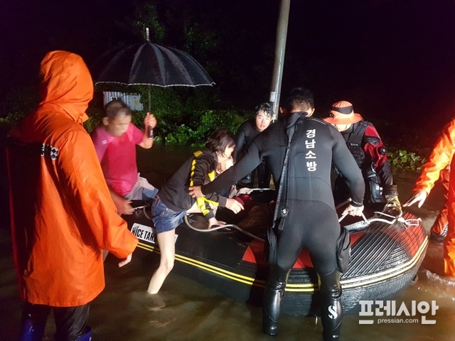 경남 진주소방서는 지난 2일 하천 범람으로 고립된 진주시 사봉면 무촌리 주민 3명을 안전하게 구조했다고 3일 밝혔다