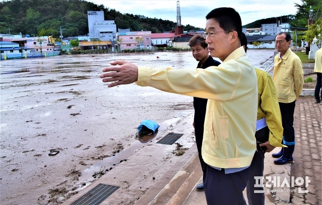 특히 강구 초등학교 피해현장에서 새벽부터 복구작업 중인 영덕교육지원청 직원들을 격려하고 위로했다.