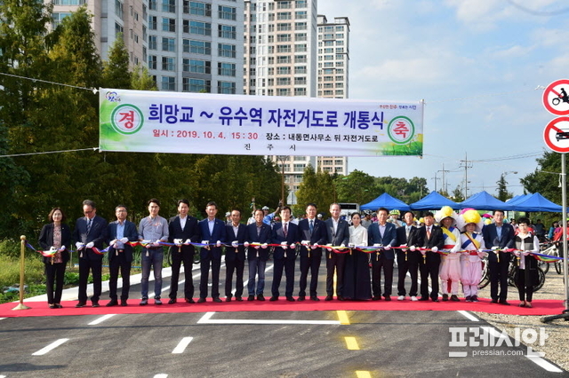 이날 행사는 식전행사로 내동면과 평거동 풍물단의 신명나는 풍물놀이로 시작을 알린 후 자전거도로 준공 표지석 제막, 축하 테이프 커팅 순으로 행사가 진행되었다. 이어 자전거도로 개통식 이후에는 자전거대행진이 열렸다.