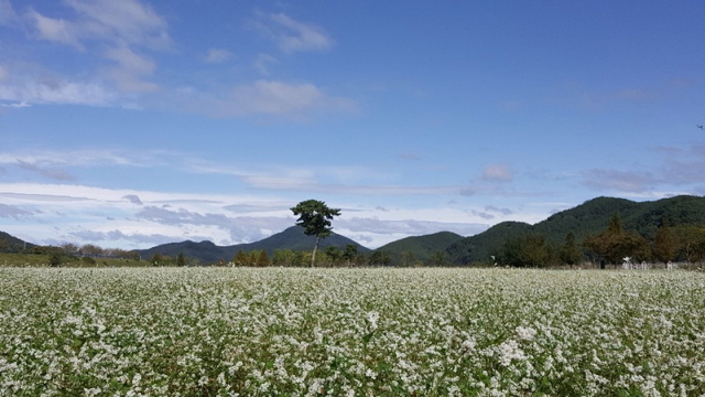 ‘연인’이라는 꽃말을 가진 메밀꽃과 ‘고백’이라는 꽃말을 가진 핑크뮬리가 만나 한 쌍의 남녀를 떠올리는 하얗고 분홍의 두 꽃이 조화롭게 어울려 아름다운 장관을 이루고 있다.