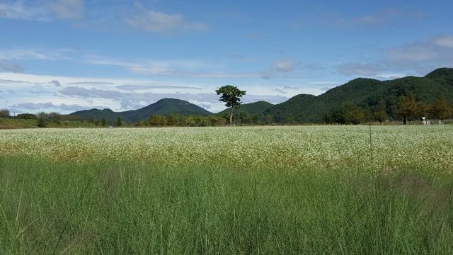 의령군 지정면, 하얀 메밀꽃과 핑크뮬리 만개해