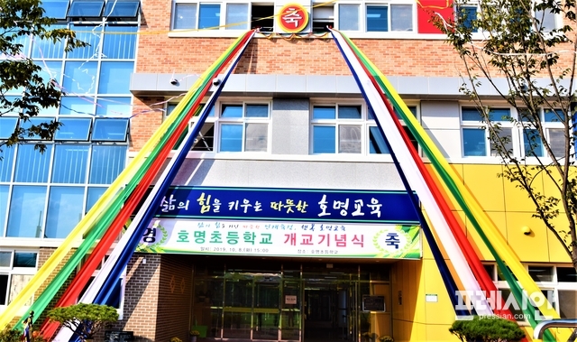 호명 초등학교는 올해 3월 초등 727명에 30 학급, 유치 168명 8학급 규모로 1대 엄상일교장이 취임하며 삶의 힘을 지닌 따뜻한 인재육성을 비전으로 학생들이 즐겁게, 남다른 생각으로, 몸과 마음이 건강한, 배려하며 함께 살아가는 교육을 실천하고 있다.