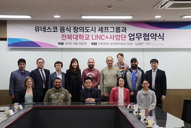 전북대학교가 유네스코 음식창의도시 대표 셰프단과 해외 현장맞춤형 실무교육을 위한 협약을 체결했다.