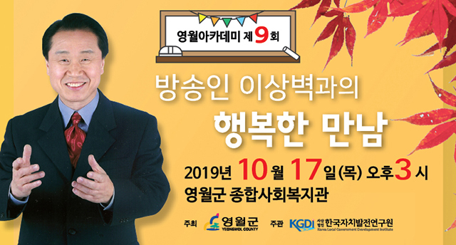 강원 영월군은 오는 17일 오후 3시 영월군종합사회복지관에서 방송인 이상벽과의 행복한 만남을 주제로 영월아카데미를 개최한다고 밝혔다.