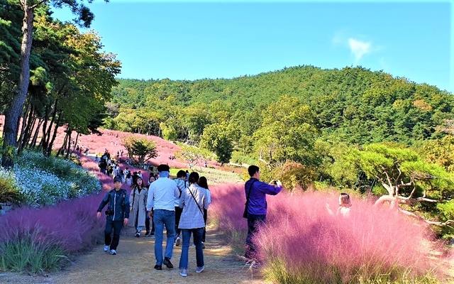 가을를 맞아 아름답게 펼쳐진 핑크뮬리 정원은 방문객들의 SNS 통해 알려지며 인기명소가 됐다.