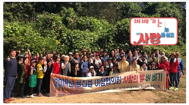 지난 2016년부터 시작한 사랑의 벼베기 행사는 용진읍 이장 40명이 마을 유휴지에 쌀을 경작하고 관내 소외계층에게 전달하는 행사다.