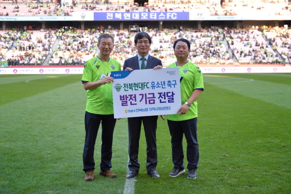 21일 전북농협에 따르면 전날 전주월드컵경기장에서 전북현대모터스FC에 유소년 축구단 훈련 강화와 전북 미래 축구 인재 육성을 위한 기금을 건넸다.