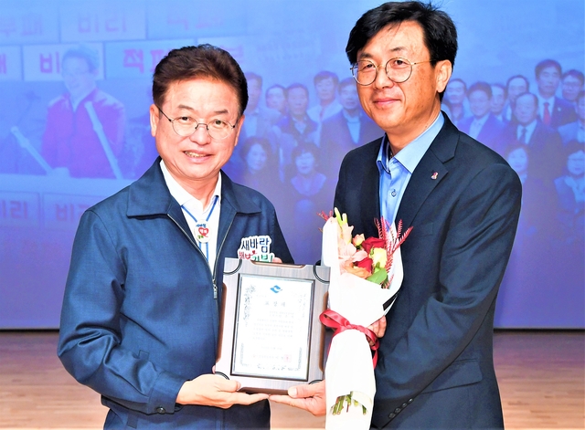 ▲제7회 경상북도 청렴도민 감사관 워크숍에서 표창패를 받은 포항 안주석(오른쪽) 씨 ⓒ경북도