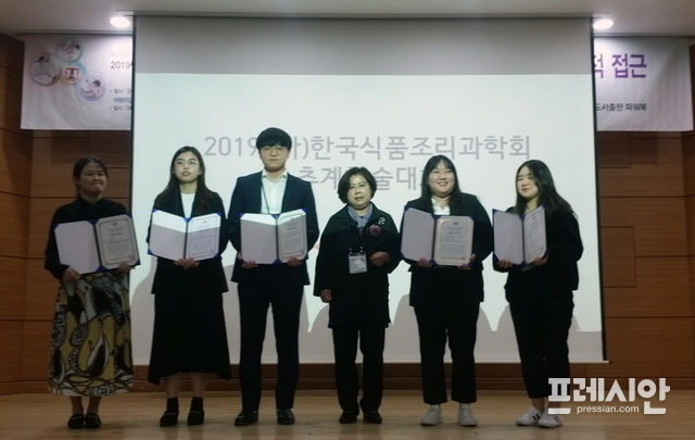 국립경남과학기술대학교 생명과학대학 동물생명과학과 대학원생 노신우, 학부생 구태완 학생이 지난 18일 서울교육대학교에서 개최된 ‘2019년 (사)한국식품조리과학회 추계학술대회’에서 각각 우수학생논문경진대회 최우수상과 우수 포스터상을 받았다고 23일 밝혔다.
