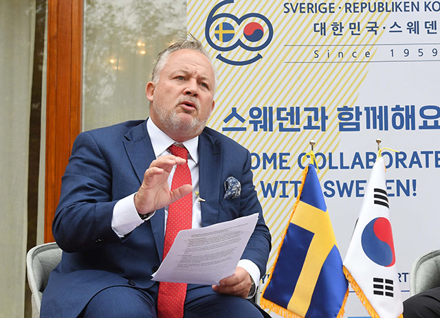 23일 서울 성북구에 위치한 스웨덴 대사관저에서 기자들과 만난 해르스테트 한반도특사는 "많은 사람들이 (10월 초 스톡홀름에서 열린) 북미 실무협상이 결렬, 중단됐다고 이해하는데 그렇지 않다"며 "예상했던 것 보다 더 오랜 시간 만남이 이어졌다"고 밝혔다.
