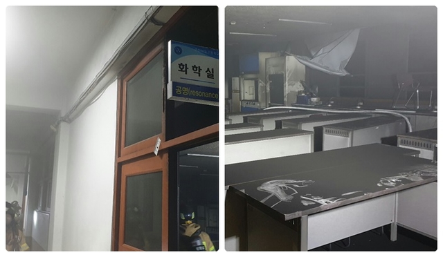 23일 오후 7시 14분쯤 전북 군산시 조촌동 군산제일고등학교 5층 화학실에서 화재가 발생했다.