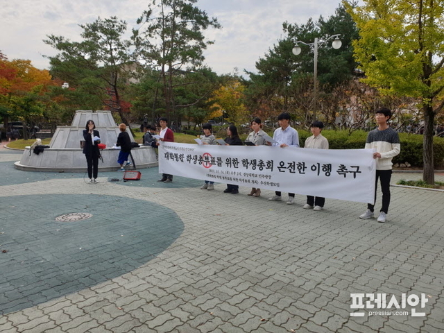 24일 경상대학교 학생회관 앞 민주광장에서 '학생총회 추진 학생 모임'이 기자회견을 가졌다.