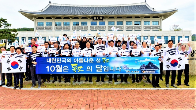 경북도의회(의장 장경식)는 24일 도의회 앞마당에서 장경식 의장, 도의원, 의회사무처 직원 등 100여명이 참석해 ‘10월 독도의 달’ 홍보 행사를 가졌다.