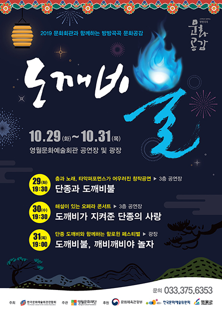 (재)영월문화재단(이사장 최명서 영월군수)은 오는 29일부터 31일까지 지역 문화의 거점인 영월문화예술회관 공연장 및 광장에서 단종과 장릉 수호 도깨비 전통 설화를 바탕으로 한 ‘도깨비 불’을 공연한다.