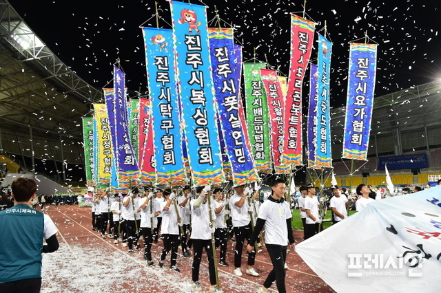한편 개회식의 하이라이트인 시․군 입장퍼레이드에서 개최지 진주시는 마지막으로 입장하면서 진주성 전투를 테마로 구성하여 이색적인 뮤지컬 퍼포먼스를 연출함으로써 진주종합경기장을 찾은 관람객들의 눈길을 사로잡았다.