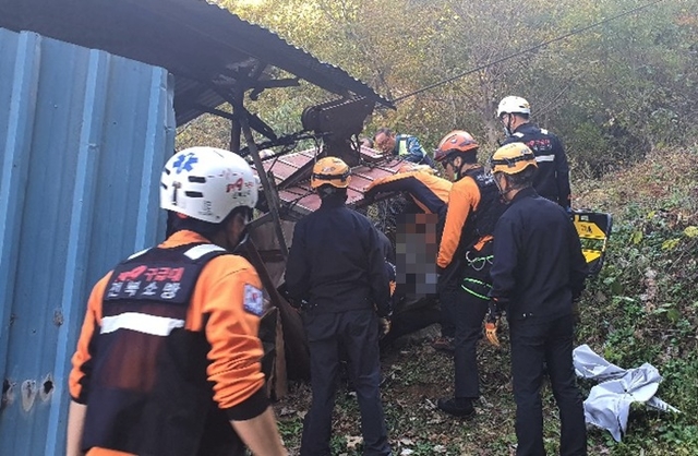 [포토] 3명 사상자 발생한 추락 화물용 케이블카