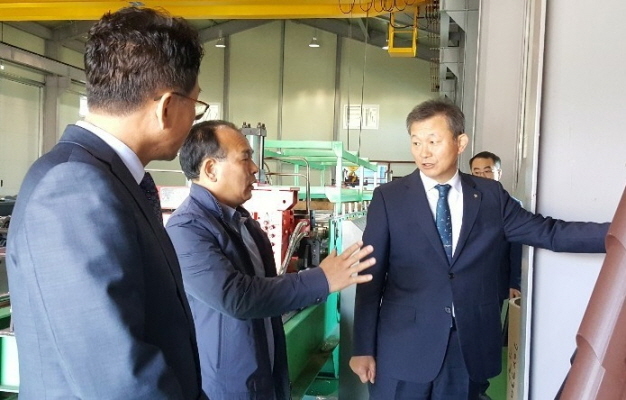 30일 농협은행 전북본부에 따르면 이날 김장근 본부장 등은 전주시 덕진구에 위치한 금속판 제조업체인 (유)대한판넬을 찾아 현장에서 느끼는 경영상의 애로사항을 청취하고 유동성 경색 해소를 위한 금융지원 방안에 대해 논의했다.