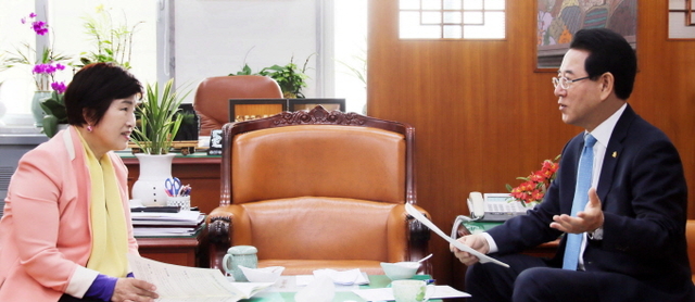 ▲김영록 지사가 전혜숙 국회 행안위원장 만나 국립 섬 발전연구진흥원 설립 등을 건의 하고 있다ⓒ전남도청