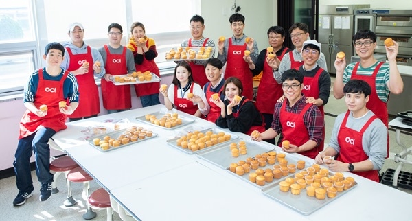 OCI(주)는 1일 전북 군산적십자 봉사관에서 사랑의 빵을 만들어 지역 내 12개 복지시설에 빵을 전달했다.