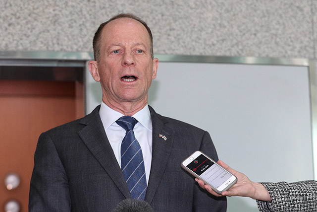 그는 이날 외교부 장차관과 면담 자리에서 이 문제와 관련한 언급을 했냐는 질문에 대답 없이 자리를 떠났다.