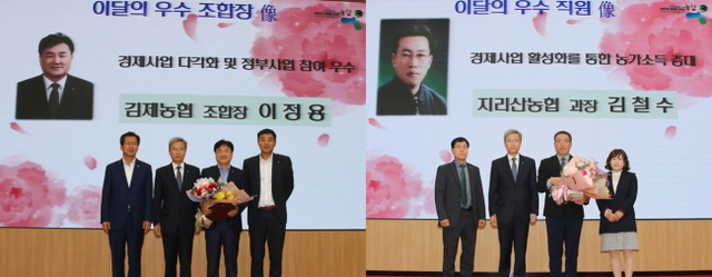 전북농협은 6일 지역본부 정례조회에서 우수 조합장 부문에 김제농협 이정용 조합장을, 우수 직원 부문에 지리산농협 김철수 과장을 각각 '이달의 우수농협인'으로 각각 선정해 시상했다.