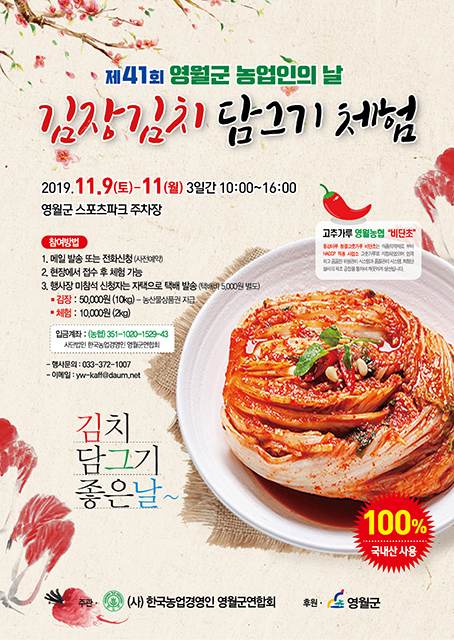 한편, ‘제41회 영월군 농업인의 날’ 행사는 오는 11일 오전 9시 30분부터 영월 봉래산 정상과 스포츠파크 실내체육관 앞에서 동시에 진행된다.