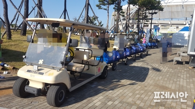 ▲진주국제농식품박람회장 관람용깡통열차.ⓒ경남소방본부