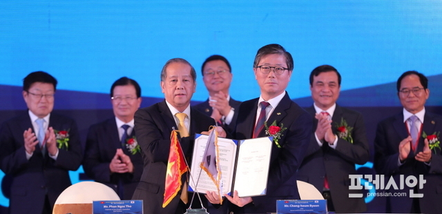 MOU는 주형철 청와대 경제보좌관 겸 신남방정책특별위원회 위원장, 박노완 주베트남 대사, 김영주 무역협회회장, 코트라 권평오 사장, 베트남 응웬 딘 쭝 부총리, 마이 띠엔 중 총리실 차관, 판 비엣 끄엉 꽝남성 당서기, 부 띠엔 록 베트남 상공회의소장 등이 참여한 ‘한-베트남 투자기술협력 포럼’에서 체결됐다.