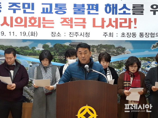 경남 진주시 초장동 통장협의회는 19일 진주시청 브리핑룸에서 기자회견을 열고 시의회에 최근 진주시의 시내버스 국비 공모사업 예산 편성이 무산된데 대해 안타까운 심정을 알렸다.