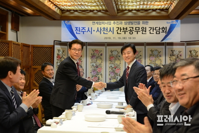 경남 사천시와 진주시가 지난 19일 상생발전을 위한 사업을 발굴하고 서로 협력하기 위해 ‘사천시-진주시 간부공무원 간담회’를 개최했다.