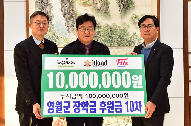 롯데주류 강원지사, 영월군에 향토장학금 기탁