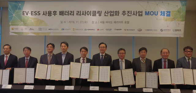 또 이날 협약은 산업통상자원부가 공모로 선정한 ‘EV/ESS 사용 후 배터리 리사이클링 산업화’의 참여 기관이 협력해 국내 EV, ESS 사용 후 배터리 시험평가·인증 인프라를 조기 구축해 성공적으로 사업을 추진하기 위해 이뤄졌다.
