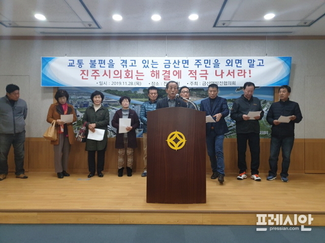 또 "진주시의회가 시내버스 증차 관련 예산을 통과시켜야 금산면 교통 복지 문제를 해소할 수 있을 것"이라고 주장했다.