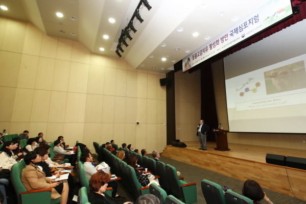 농촌진흥청은 동물교감치유의 사회적 가치 실현을 위한 국제심포지엄(학술토론회)을 28일 농촌인적자원개발센터에서 개최했다. 정부 혁신의 하나로 마련한 이번 국제심포지엄에서는 동물교감치유 연구 동향을 공유하고 발전 방안을 찾기 위해 우리나라와 미국의 관련 전문가들이 참석했다. 문홍길 농촌진흥청 국립축산과학원 축산생명환경부장이 '동물교감치유 활성화방안 국제심포지엄' 개회사를 하고 있다. ⓒ농촌진흥청