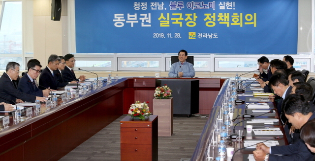 전라남도는 지난 28일 여수광양항만공사에서 ‘동부권 실·국장 정책회의’를 열어 전체 실·국장과 함께 광양항 배후단지 확대 등 동부권 핵심 현안과 발전 전략을 구상하고 논의했다.