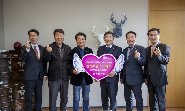 전북지역 유일의 향토은행인 전북은행은 복지사각지대에 놓인 소외계층 이웃들을 돕기 위해 소액으로도 후원할 수 있는 '1만 1004 캠페인'의 취지에 동감하고, 전북지역 기업 중 처음으로 임직원 568명이 매월 1만1004원을 기부하기로 약정해 연간 7500여만 원의 성금을 지원하게 된다.