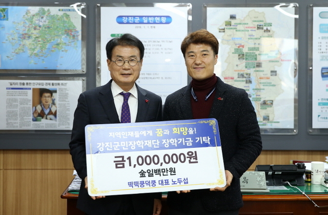 한편 노 대표는 지난 2011년 50만원의 장학기금을 기탁한데 이어 지난 12월 2일에 강진군민장학재단에 장학기금 100만원을 기탁했다. 이번 기탁식은 강진군 로컬푸드 직매장 내 성공적인 정착에 대한 감사의 마음과 지역인재 육성을 위한 열정이 모아진 것으로 의미가 크다.
