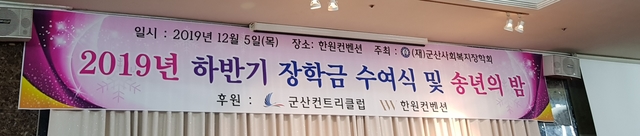 김기봉이사장은 인사말에서 "장학금을 받은 학생들에게 축하하며 열심히 학업에 정진하기 바란다"고 하였으며 " 항상 우리장학재단 회원들이 오랜 기간동안 동참을 해주기에 가능하다"고 말하고 고마운 마음을 전하였다. 군산사회복지장학회는 30여년을 지역사회에 학교시설과 기자재.장학금.장애인단체.시설.노인단체등 헤아릴 수 없을 정도로 많은 곳에 120여억원을 기부해온 장학단체이며 이러한 공로로 대통령포장. 국무총리표창.시민의장 봉사부분 등 수많은 표창과 감사패를 받았다.