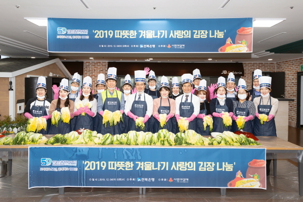 JB전북은행지역사랑봉사단이 5일 전북은행 본점에서 '2019 따뜻한 겨울나기 사랑의 김장 나눔' 봉사활동을 펼쳤다.