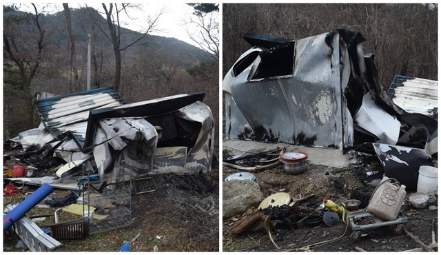 [포토] 엿가락처럼 녹아버린 조립식 가건물