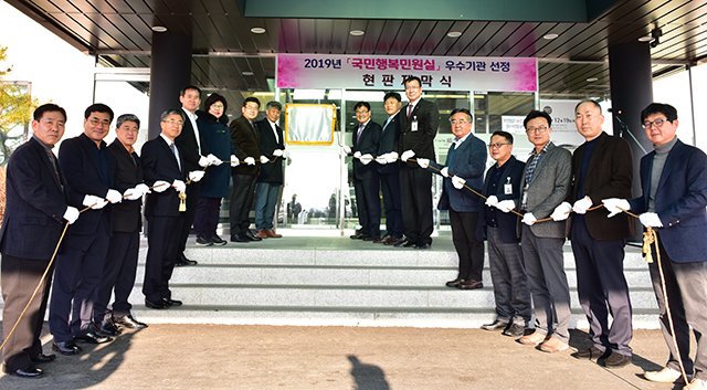 강원 영월군은 16일 군청 중앙현관에서 최명서 영월군수, 군의장, 의원, 군청 공무원 등이 참석한 가운데 행정안전부 주관 국민행복민원실 우수기관 현판 제막식을 가졌다.