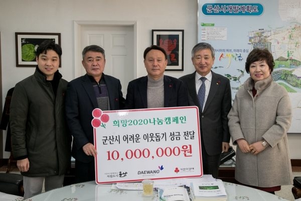 19일 군산시에 따르면 '희망 2020나눔캠페인' 기간 중인 이날 한국국토정보공사 군산지사의 기부로 나눔 릴레이가 시작됐다.