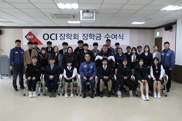 이날 OCI 군산공장에서 열린 전달식에서는 올해 선발된 대학생 1명과 고등학생 18명, 중학생 10명 등 총 29명의 학생에게 1400만 원의 장학금이 지급됐다.